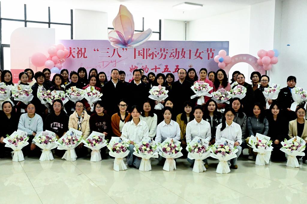 3月6日下午,学校工会开展“她的‘十五五’:从心出发,向新而行”庆祝“三八”国际劳动妇女节活动。党委书记向君、校长李艳红,党委委员石明、李杰出席活动,为60多名女教职工代表赠送鲜花,并与女教职工代表们进行了座谈。